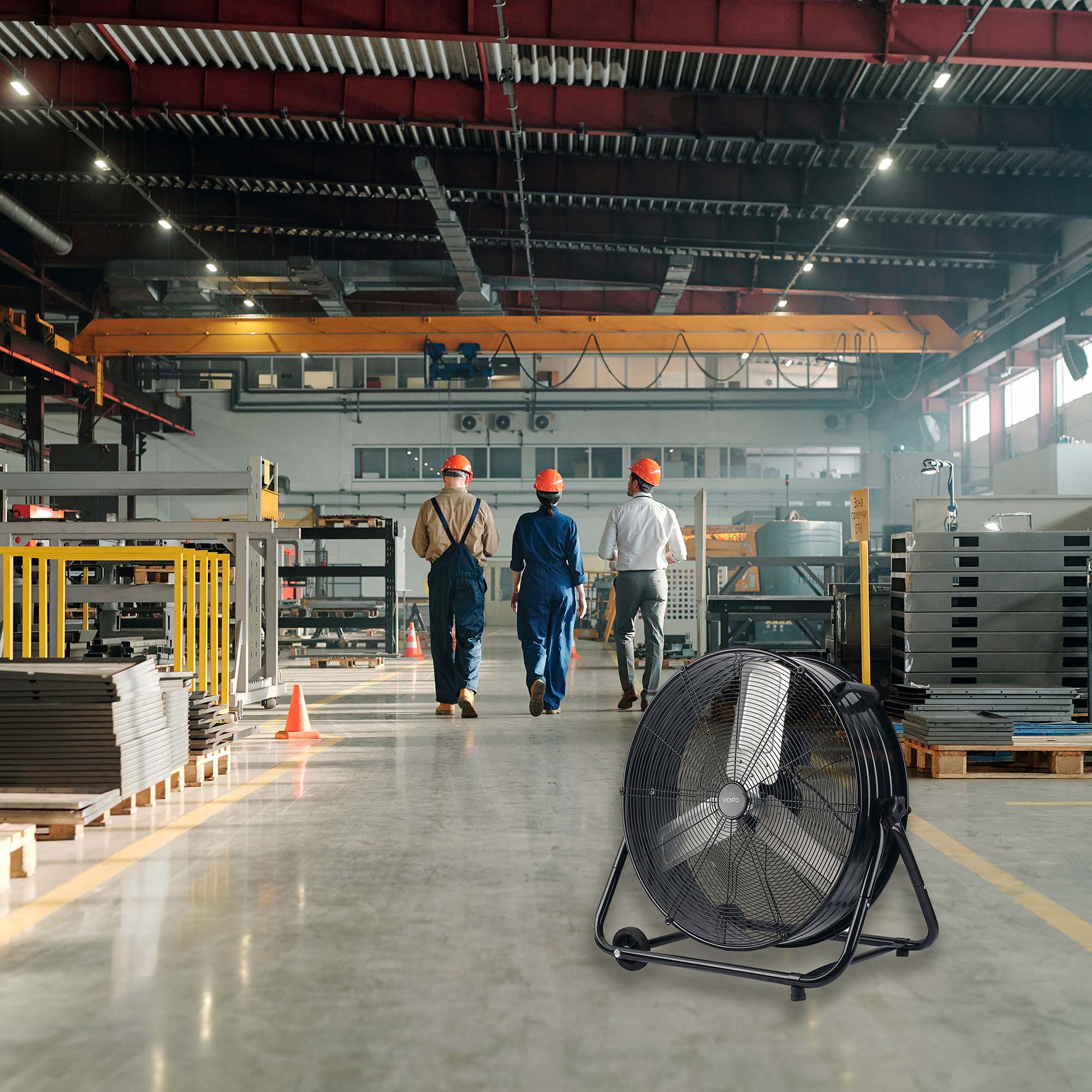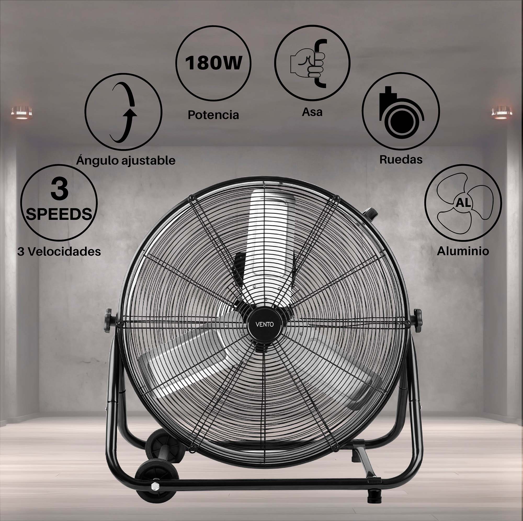 Con aspas de aluminio, 3 velocidades, ángulo ajustable, ruedas, base antideslizante y potente flujo de aire de 9832 m³/h.